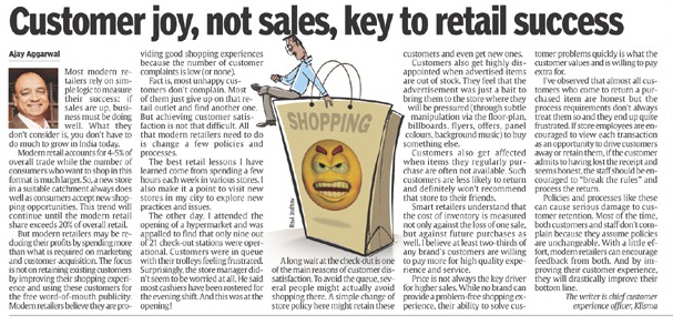 But modern retailers may be reducing their profits by spending more than what is required on marketing and customer acquisition. The focus is not on retaining existing customers by improving their shopping experience and using these customers for the free word-of-mouth publicity. Modern retailers believe they are providing good shopping experiences because the number of customer complaints is low (or none).