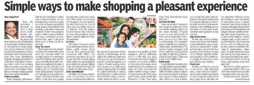 Another irritating experience is loud music. In-store music can be used to enhance the mood of customers looking for retail therapy. It can add to the ambiance and be as effective as a good shop display. If it is inappropriate, too loud or of poor quality, however, it can ruin an otherwise good shopping trip. I’ve failed to understand why so many retail brands in India choose the local FM radio. Good retailers make the effort to understand the profile of their shoppers during different hours of the day and play recorded music accordingly. If mothers come with toddlers in the early afternoon, some kind of music for children can keep the kids entertained while mothers shop. It doesn’t cost much at all! (But some well-known retail chains like Westside of the Tatas play their own customised ‘radio stations’.)